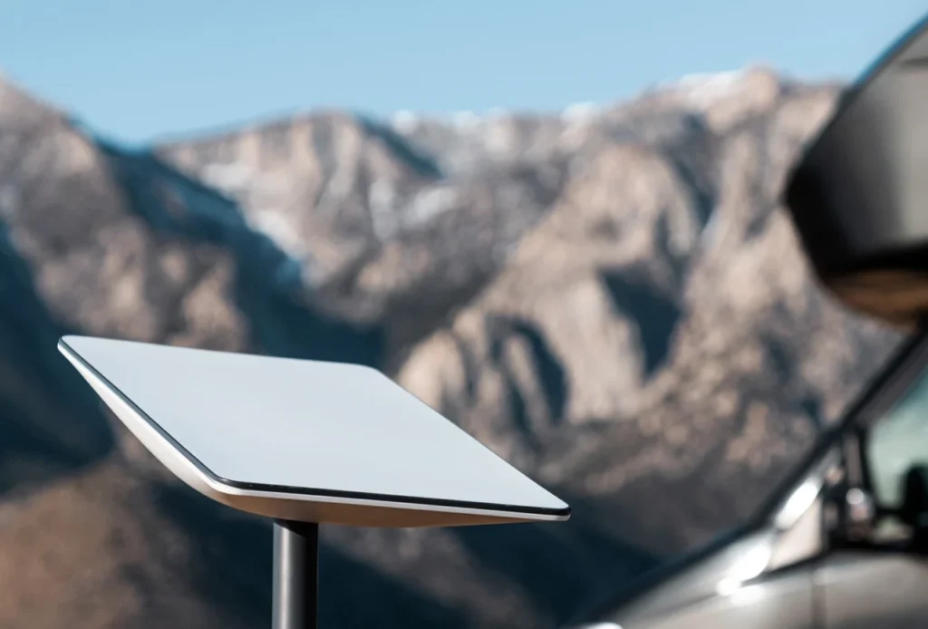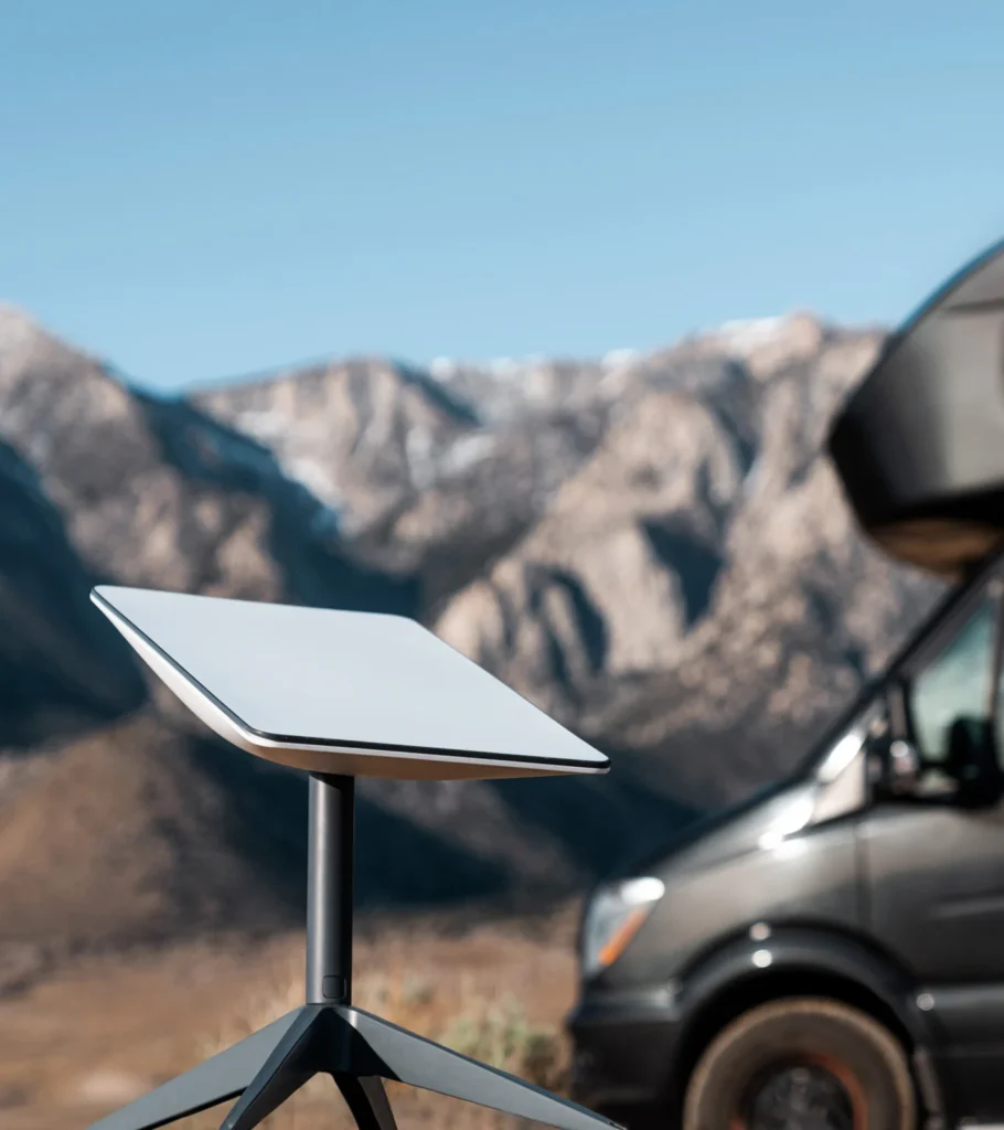 O Starlink Mobility funciona com o hardware Flat High Performance da Starlink. Com um amplo campo de visão e recursos aprimorados de GPS, o Flat High Performance pode se conectar a mais satélites, permitindo conectividade consistente em qualquer lugar.